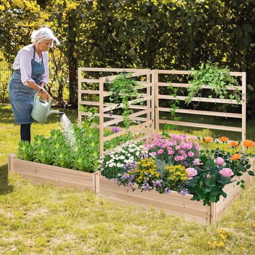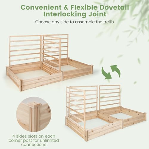 Giantex Raised Garden Bed with 3 Trellises for Vegetables Fruits Herbs Cucumber | Giantex 88"L x 45"W x 43"H Wood Plant
